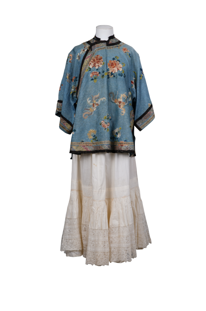 上衣:清淺藍緞地刺繡蝶戀花女襖