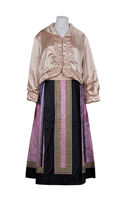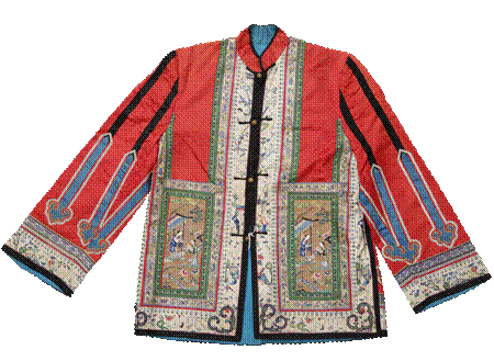 20世紀紅色暗花綢地刺繡花鳥紋馬面裙改短外套