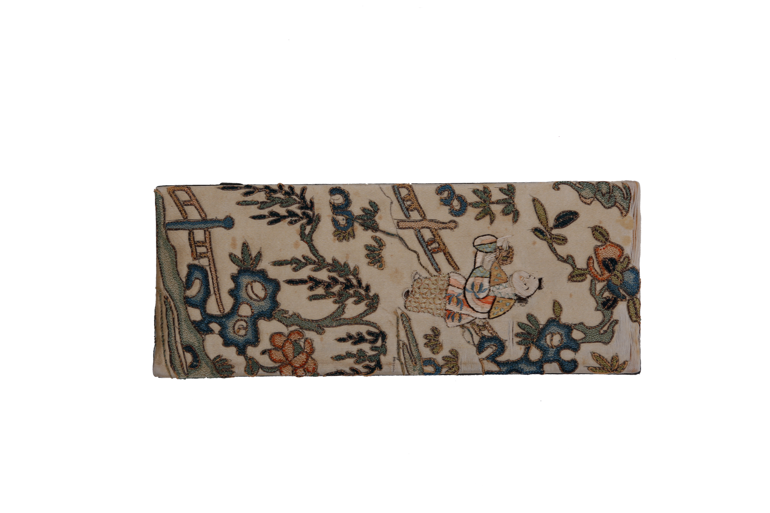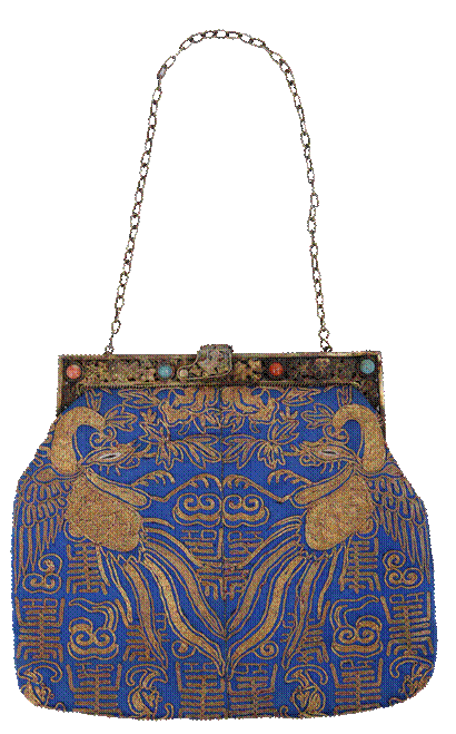 20世紀平金繡藍緞地龍紋挽袖手袋