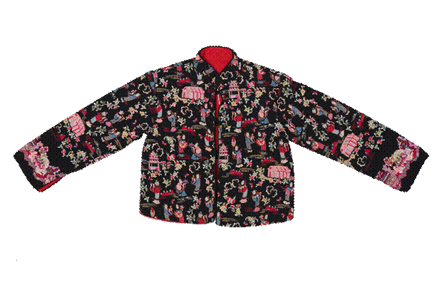 20世紀80年代美藉菲律賓時裝設計師JOSIE NATORI設計中國風黑色印花短外套