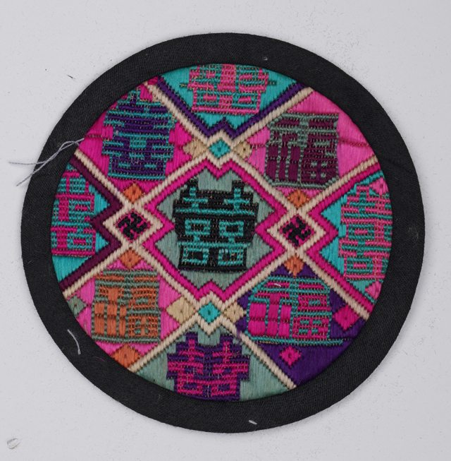粉撲上的刺繡紋樣多半以寓意吉祥的圖案題材為主,比如吉祥文字、蝙蝠、佛手、五毒等等。蝶戀花圖案是當(dāng)時(shí)刺繡粉撲常用的紋樣,它通常由蝴蝶與牡丹、桃花、菊花和梅花等花卉組合在一起,也稱“花蝶紋”“蝴蝶戲花”或“蝶趕花”。杜甫有詩云:“穿花蛺蝶深深見,點(diǎn)水蜻蜓款款飛”,其意境優(yōu)美雅致,引入遐想,人們也用它來寓意甜蜜的愛情和幸福的婚姻。而另一方面,粉撲在民間也常被作為陪嫁物品,清代《杭俗遺風(fēng)》“婚嫁類”一目有載:“女色即所應(yīng)陪嫁之衣服首飾,如便簪、耳挖、耳環(huán)、珠領(lǐng)、戒指、皮裙、皮襖之類,皆可入盤,另有鈔袋、匙袋、油搨、粉撲之類。”所以,這些刺繡粉撲不僅是女子們扮靚用的梳妝用品,也是飽含對(duì)美好生活向往之情的藝術(shù)品。