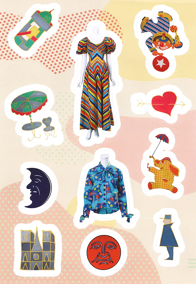 除了色彩的創(chuàng)新,波普藝術(shù)常用的拼接、重復(fù)和位移的技法也給予了服飾設(shè)計師靈感。波普藝術(shù)圖形提倡一種開放態(tài)度,認為所有圖像經(jīng)過處理后都可以被應(yīng)用于服裝設(shè)計中。這一觀念取代了等級制美學,即偉大與普世的、高雅與通俗的印花圖形,都可以應(yīng)用在服裝設(shè)計上。