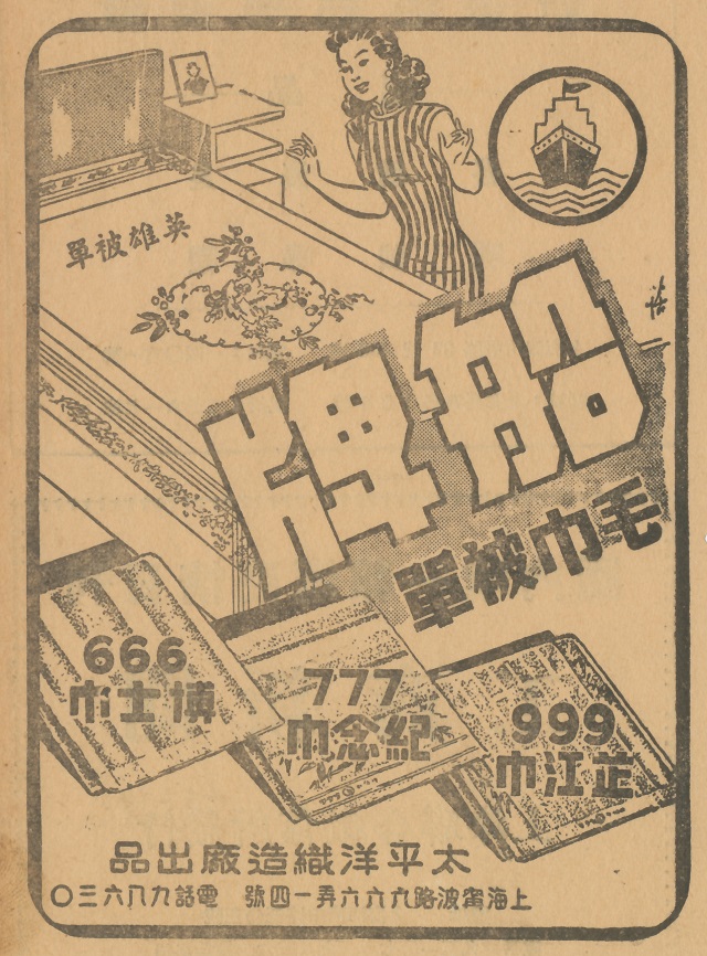 船牌英雄被單廣告,20世紀(jì)40-50年代,中國絲綢博物館藏