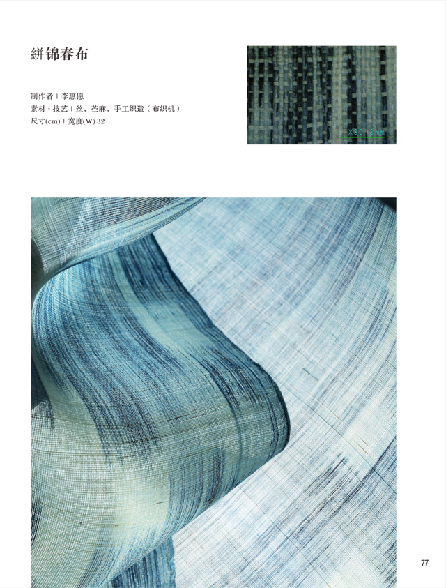 Ramie is the major source of traditional Korean textiles and its weaving technique has been listed on the Representative List of the Intangible Cultural Heritage of Humanity of the United Nations Educational, Scientific, and Cultural Organization (UNESCO). According to the traditional ramie technique, teachers and students majoring in traditional fiber in Korea National University of Cultural Heritage wove out traditional ramie fabrics, and recently, they have studied and recovered some lost textiles such as Luo, and kept trying to weave various textiles by way of modern weaving machines.
