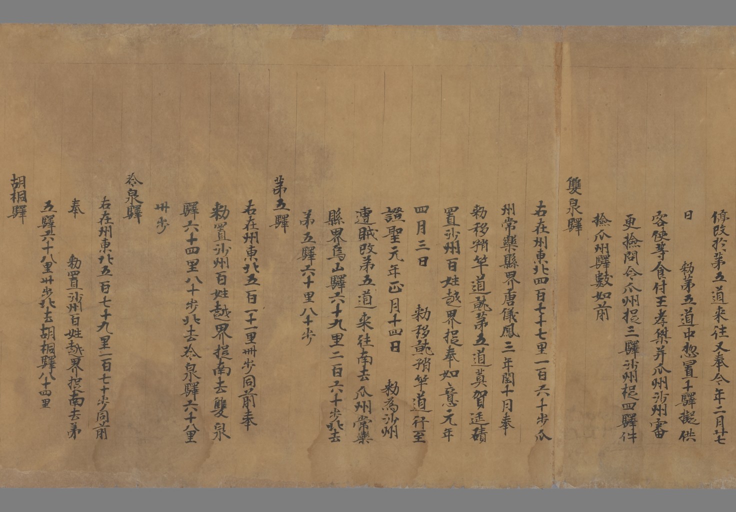 Because of ancient Chinese title conferring system and tributary trade, the Chinese central plainsand countries in the Western Regions frequently exchanged envoys after Zhang Qian’s mission. Most of these Chinese and foreign envoys are not mentioned in historical records, and only a few like Gan Ying, Song Yun, Wang Xuance, Zheng He, and Chen Cheng known by people.After returning home, some envoys wrote travel notes, from which we can infer directions and traffic conditions of the Silk Roads in the past. The Han bamboo slips unearthed from the Site of Xuanquan Posthouse in Dunhuang not only preserve a lot of envoy information, but also include a set of mileage bamboo slips.