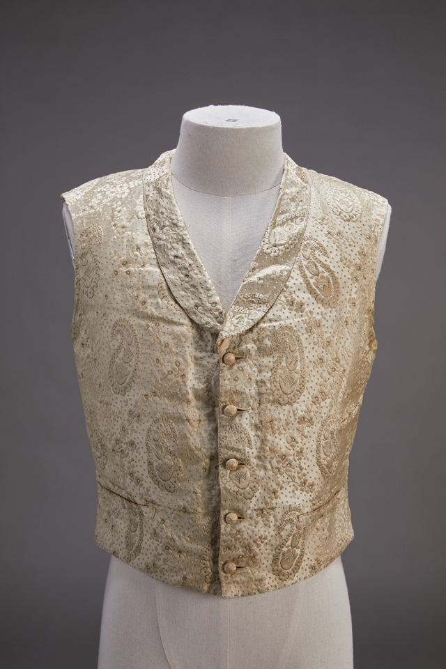 These luxury dresses have faded into a beige-like color, but their quality tells visitors they were once exclusive to the upper class.