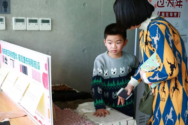 今年春節(jié),國絲館推出了“志愿者陪您國絲館里過大年”系列活動,有展覽導(dǎo)賞“國家寶藏漢機織漢錦背后的奧秘”“走近改革開放40年時尚風(fēng)采”,有互動體驗“煮繭引緒以繅絲”“明辨面料知冬衣”以及“書中覓四十年時尚”活動提供一批優(yōu)質(zhì)圖文書籍供大家閑坐翻閱。