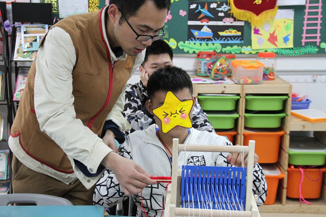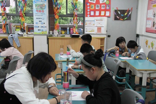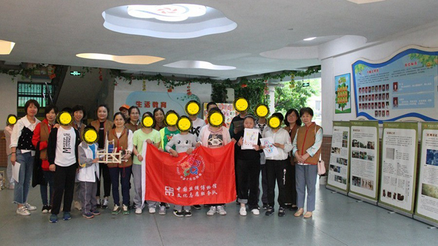 中國絲綢博物館與杭州市紫荊花學校于2018年10月簽訂館校合作實踐基地協(xié)議書。為推動特殊學校學生在國絲館的實踐工作,在第29個全國助殘日來臨之前,5月15日下午,國絲館工作人員與10名志愿者前往紫荊花學校開展“國絲女紅傳習進校園”活動。