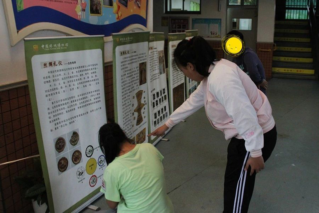 此外,國絲館還為孩子們準備了絲綢紋樣填彩和“絲綢文化進校園”的流動展覽。