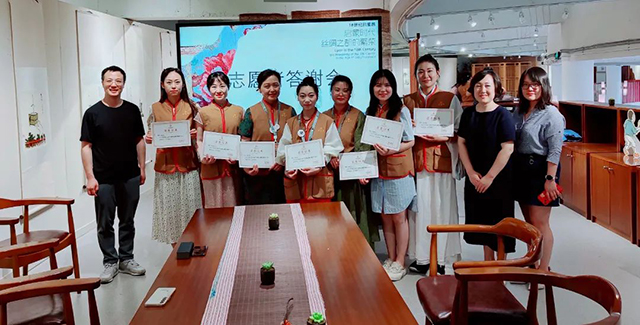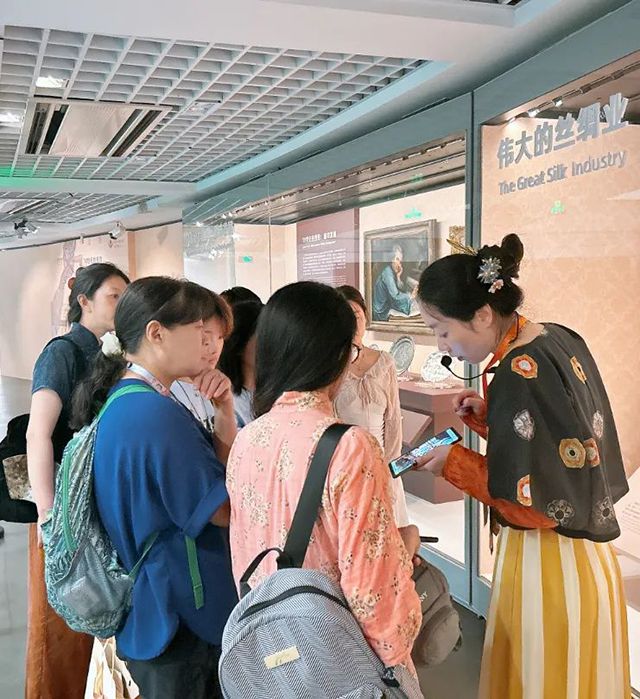 為幫助觀眾更好地理解展覽,講述文物背后的故事,國(guó)絲于暑期推出了志愿者公益導(dǎo)覽服務(wù)——12位志愿者輪流“上崗”,在每個(gè)博物館開(kāi)放日為觀眾提供講解導(dǎo)覽服務(wù)。