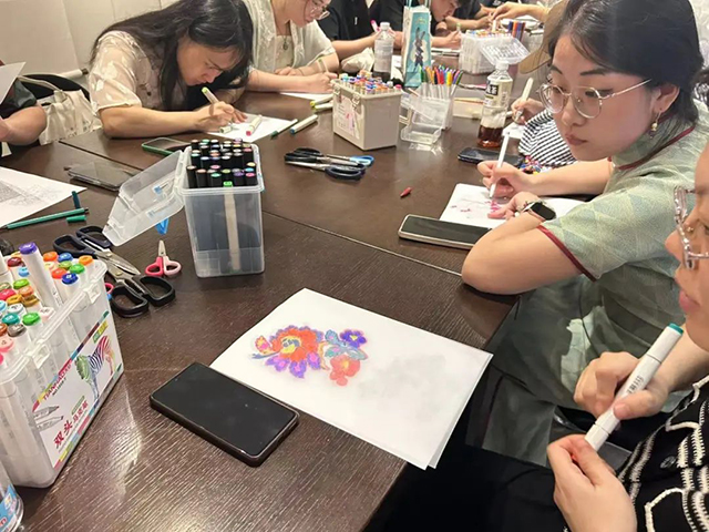 第二項(xiàng)內(nèi)容是志愿者與公眾一起體驗(yàn)特色手工活動(dòng)。在手工老師的指導(dǎo)下,大家利用展覽中的文物元素作為熱縮片的花紋,制作了精巧的冰箱貼。