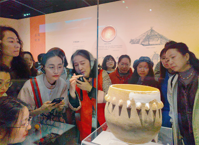 日前,志愿者們一早奔赴寧波,首站抵達(dá)寧波博物院。在2019年度中國(guó)博物館十佳志愿者之星周老師的帶領(lǐng)和講解中,大家參觀了“東方的起點(diǎn)——寧波與西安:海陸絲綢之路跨時(shí)空對(duì)話”特展,了解了寧波的地域文化和歷史發(fā)展脈絡(luò),感受燦爛的河姆渡文化和輝煌的絲路歷史。展覽中的很多文物,比如法門寺地宮出土的茶具和秘色瓷,以及展廳布置的唐代城門復(fù)原模型,勾起了大家對(duì)2024年中國(guó)絲綢博物館暑期特展“九天閶闔:絲綢之路上的長(zhǎng)安”的回憶,國(guó)絲志愿者們也分享和交流了和該展覽相關(guān)的知識(shí)內(nèi)容。