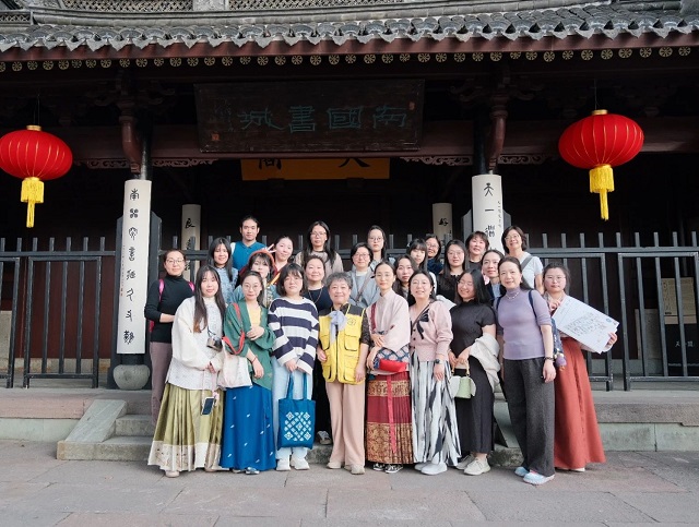 下午,志愿者們又來到天一閣博物院,接待大家的是天一閣的001號(hào)講解志愿者鄭老師。72歲的鄭老師精神矍鑠、吐字如珠,帶領(lǐng)大家了解了天一閣的前世今生。從這位資深的志愿者老師身上,大家也看到了自己努力的目標(biāo)和方向。