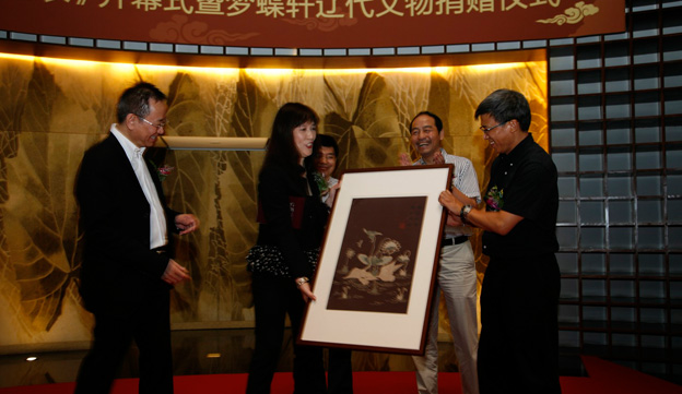 為紀(jì)念此次朱氏夫婦捐贈(zèng)活動(dòng),將夢(mèng)蝶軒遼代贈(zèng)品為主要展品,2010年9月10日-11月16日在本館舉辦以遼代生活藝術(shù)為主題的《金冠玉飾錦繡衣——契丹人的生活和藝術(shù)》展覽,2011年5月-6月,以本次展覽中的絲綢文物為主要展品,在北京大學(xué)賽克勒考古與藝術(shù)博物館舉辦《錦繡衣飾——契丹人的生活和藝術(shù)》展,以作為我館對(duì)香港收藏家義舉的感謝和重視,并吸引更多的社會(huì)各界人士踴躍捐贈(zèng)。