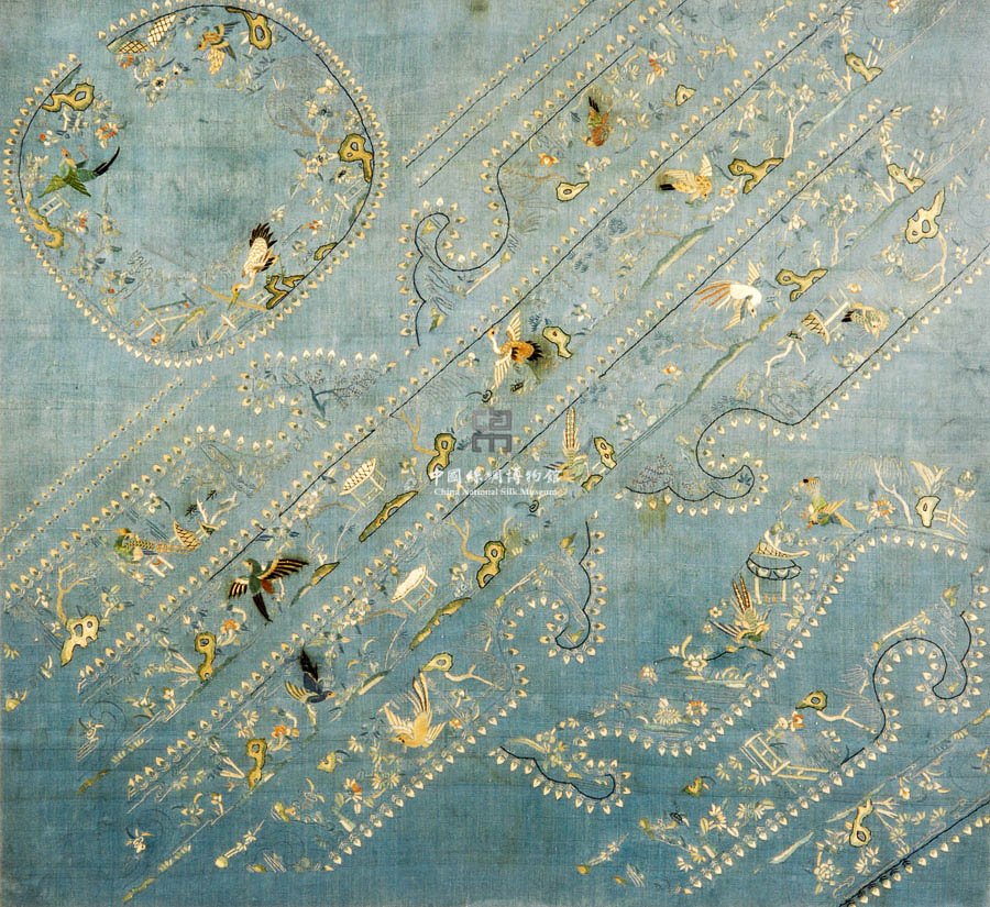 民國(guó)藍(lán)地刺繡花鳥紋衣飾 民國(guó)