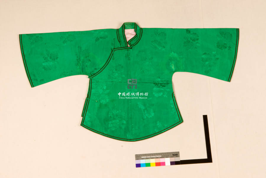 民國(guó)翠綠色月季花紋暗花綢倒大袖襖 民國(guó)