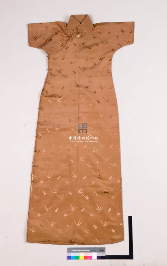民國(guó)水波地竹葉紋暗花綢短袖旗袍 民國(guó)