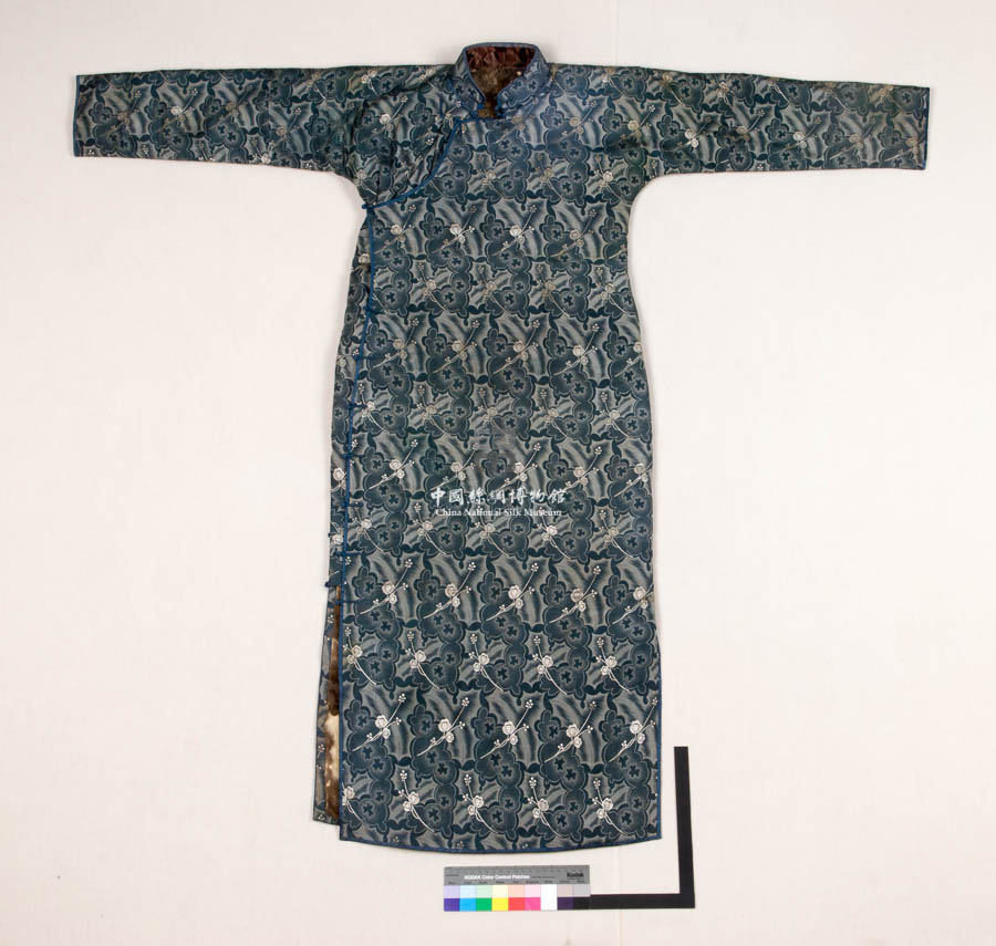 民國藍(lán)灰色地花卉紋毛里長(zhǎng)袖旗袍 民國