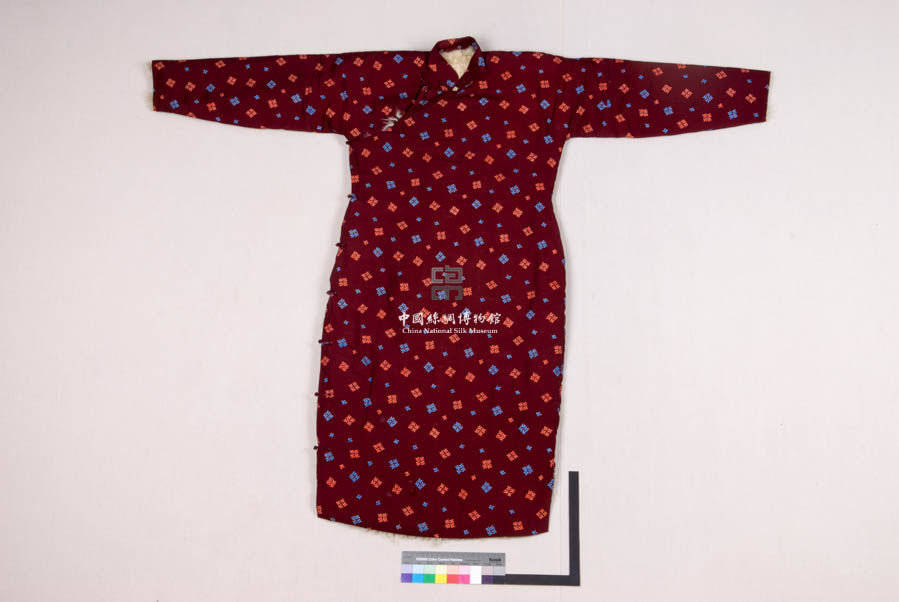 民國(guó)深醬紅色葛地印散點(diǎn)花毛里長(zhǎng)袖旗袍 民國(guó)