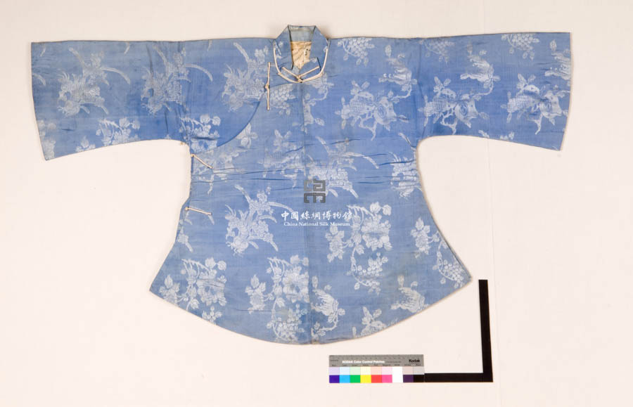 民國(guó)藍(lán)灰色地花卉葡萄紋二色綢倒大袖襖 民國(guó)
