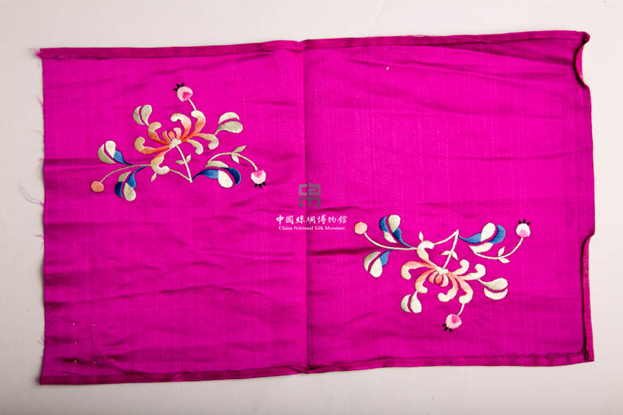 民國(guó)玫紅緞地彩繡菊花繡片 民國(guó)