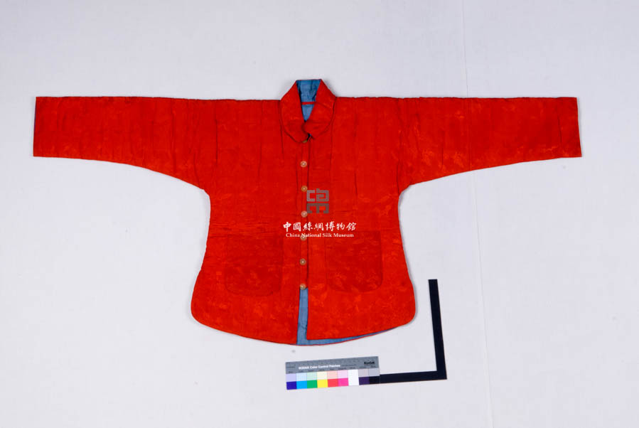 民國(guó)朱紅色牡丹紋暗花綢襖 民國(guó)