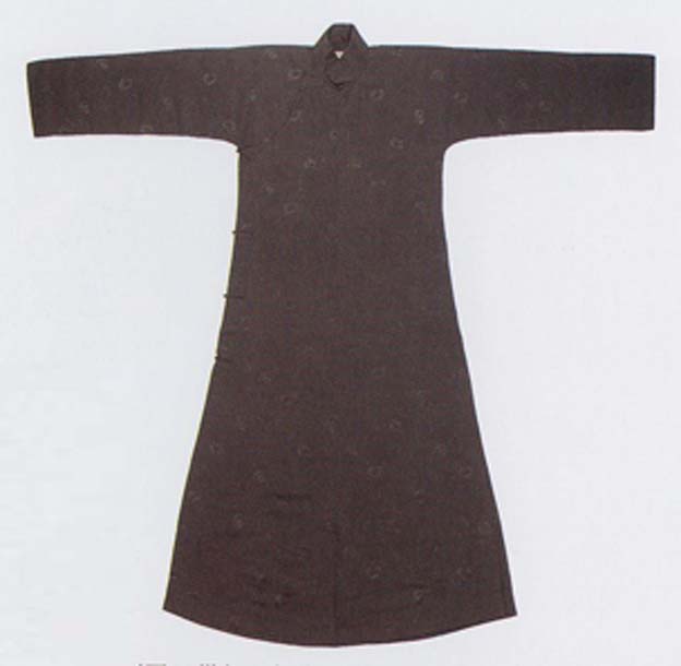 In a dark brown material, this long-gown has a stand collar and opens to the right. By the 1920s, men were earing long-gowns that were more tightly fit than those of the late Qing. Such accessories as hats and leather shoes were widely used together with the long-gowns. (XY)