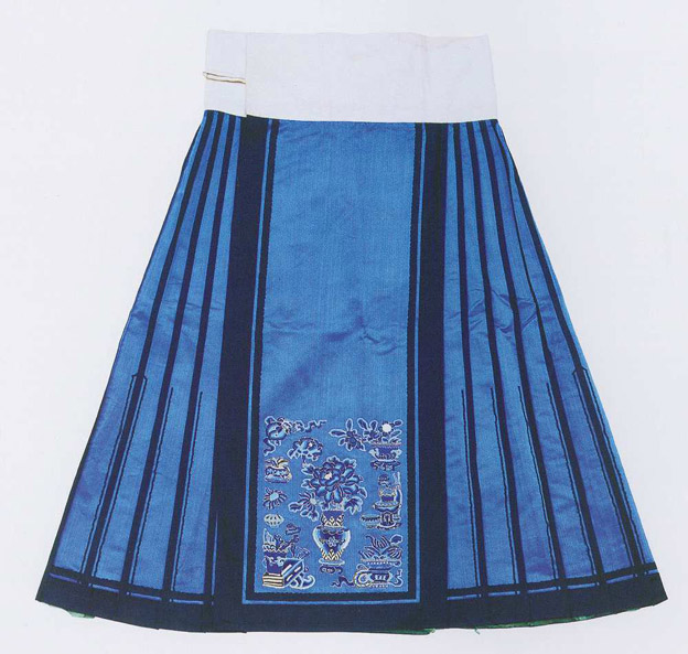 Banded-skirt in Three-Blue Tones Embroidered with Auspicious Patterns