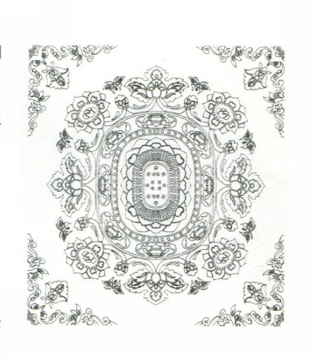 This damask piece consists of a single floral medallion with accessory flowers. The main motif is actually a frontal lotus blossom, with depiction of lotus seeds, petals, and flying butterflies. Technically speaking, the draft needed for single medallion is two times as large as that for dual medallions, and four times as for quadruple medallions, thus requires complicated craftsmanship. During the Dali era of the Tang dynasty, it was even prohibited from production, demonstrating the priceless value of this piece.