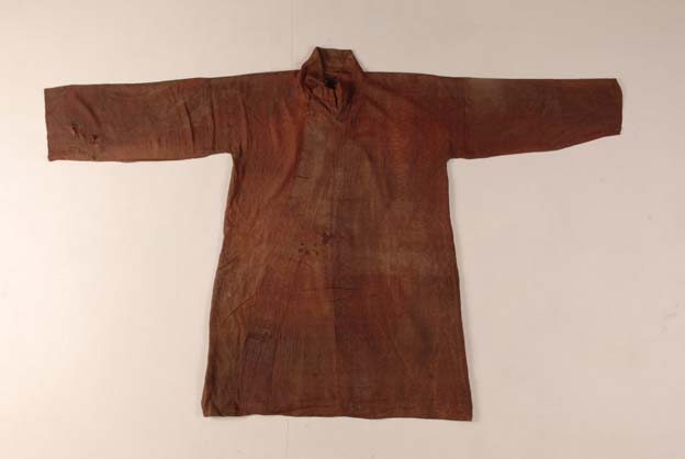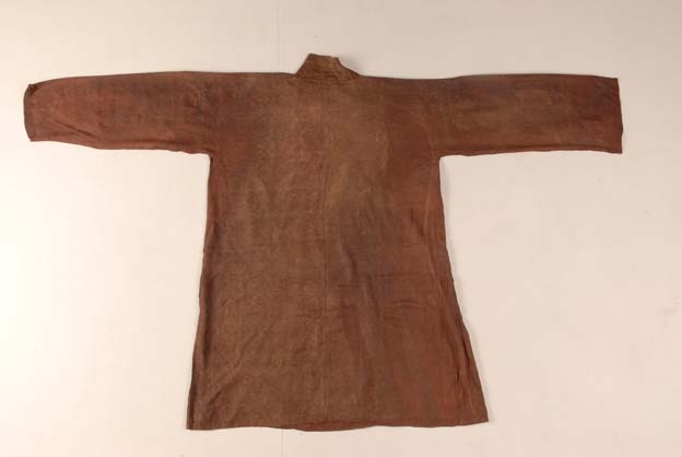 隋代斜襟暗紅色套環(huán)紋綺袍
