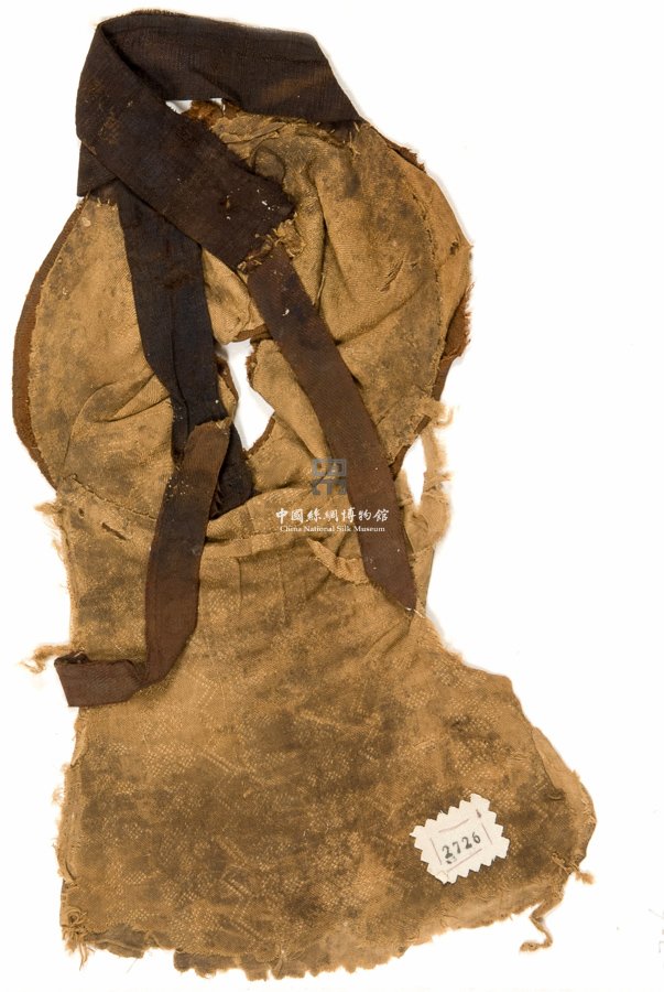形狀內(nèi)容描述 此帽征集于青海民間,帽上端呈上窄下寬的梯形,中間后背部有一塊披于肩部呈長方形的"披帛",左右兩側(cè)各有一條呈環(huán)狀的絹帶,可推測為元代晚期姑姑冠的配件,即戴于展筒下端、套于前額處的抹額。