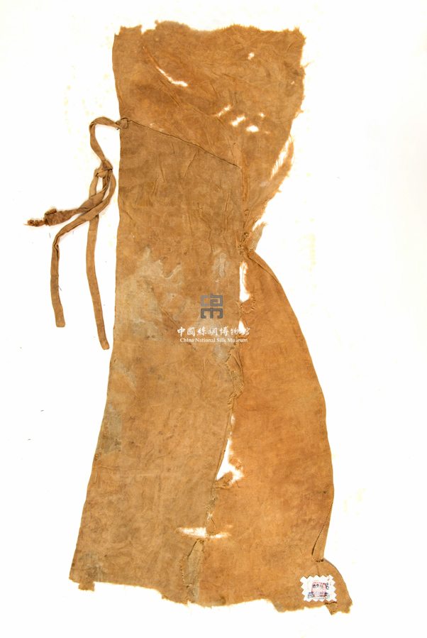 形狀內(nèi)容描述 該織物殘片為一暗花緞,即在織物表面上以正反緞紋互為花地組織的單層提花織物。該殘片推斷其原件為壽衣一部分。
