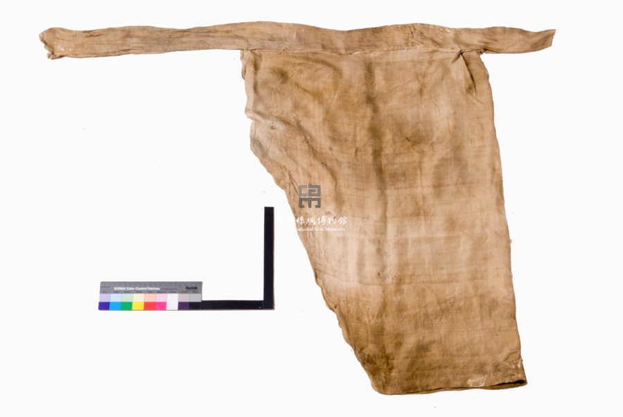 形狀內(nèi)容描述 該殘片為一絹料,即最簡(jiǎn)單的平紋織物。推測(cè)它的原件屬于絹褲一部分。