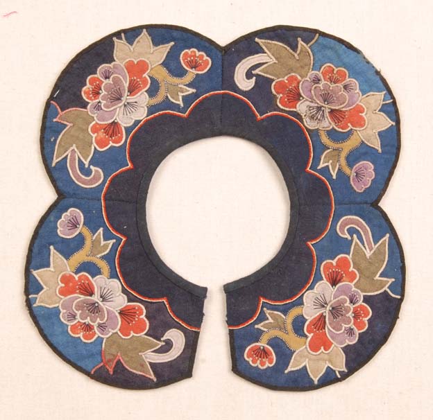 晚清五彩貼繡花卉紋四瓣花形口圍