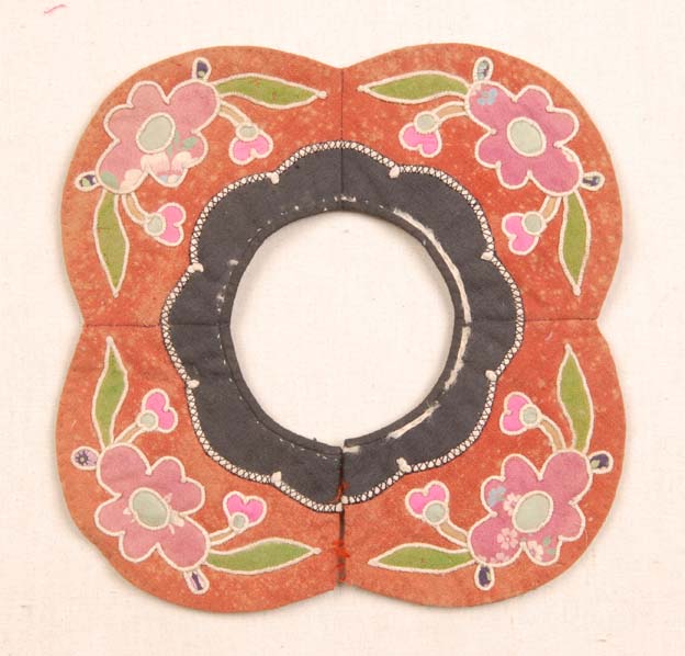 晚清五彩貼繡花卉紋四瓣花形口圍