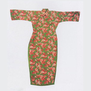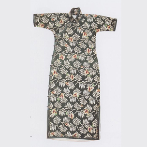 Printed Silk Qi-pao with Long Sleeves