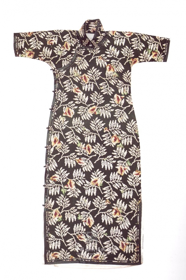 Dark Green Half-Sleeve Georgette Qi-Pao Robe