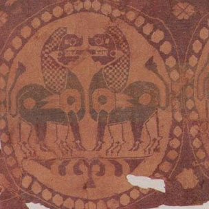 Samite of Bird with Ribbon in Pearl Roundel