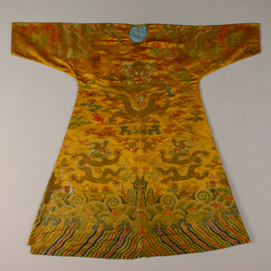 清黃地流云蝙蝠紋妝花龍袍