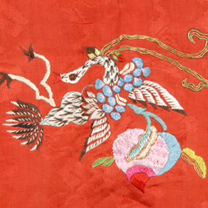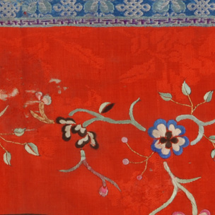 晚清紅地彩繡花卉紋方形口圍