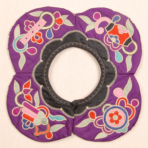 晚清紫地彩色貼繡口圍