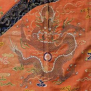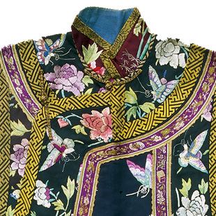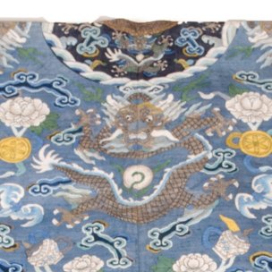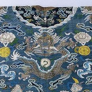 緙絲藍地云蝠牡丹八寶九龍夾袍
