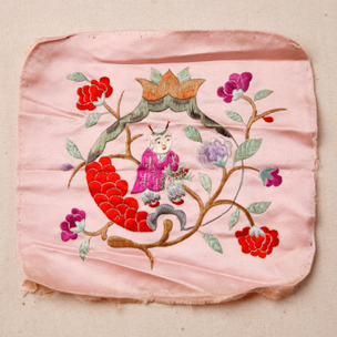 粉紅緞繡多子花卉枕片