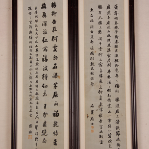 劉墉書法絲織條屏