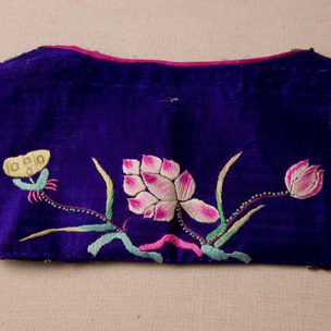 紫緞繡嬰戲花蝶腰包