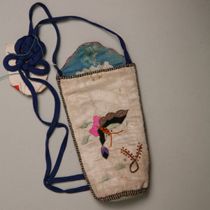 藕藍(lán)色絹圈金繡石榴煙絲袋
