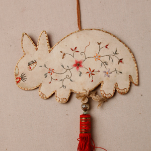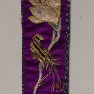 玫紅緞鋪絨繡玉蘭花鳥扇套