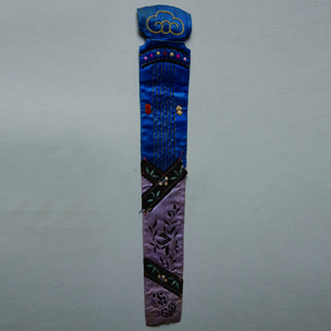 藍(lán)藕色緞繡花草扇套片