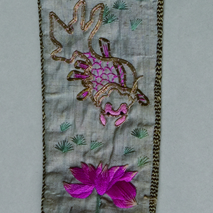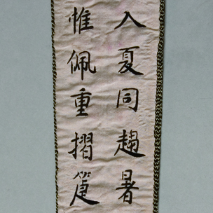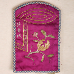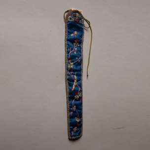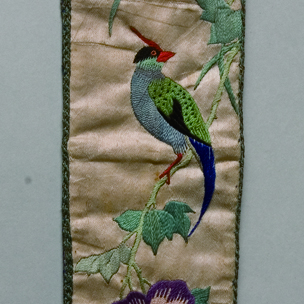 藍(lán)白色緞地彩繡花鳥詩文扇套