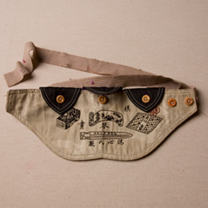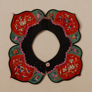 紅綠綢繡花卉桃子形口圍